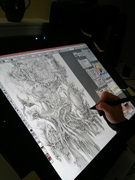 I can work in both traditional mediums (oils, gouache, and pencil) which influence how I create artwork on a Wacom Cintiq tablet. It surprises some people that my second picture book, SILLY FRILLY GRANDMA TILLIE was illustrated digitally on the computer because of the traditional pencil texture. My goal has been to retain the textures and colors from my traditional painting technique (gouache, salt and color pencils) which produced the look of my first picture book, THE WARMEST PLACE OF ALL.